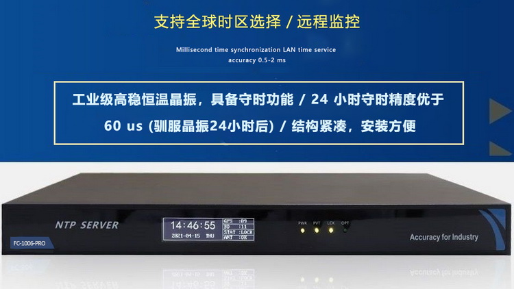 我司近日为香港客户交付了一批NTP授时服务器。。。它是一款基于NTPv2/v3/v4协议的专业级网络时间服务器,,,前面板带OLED高清液晶显示屏,,内置工业级恒温晶振,,,,具备守时功能,,,可部署于有更高要求的严苛应用环境...